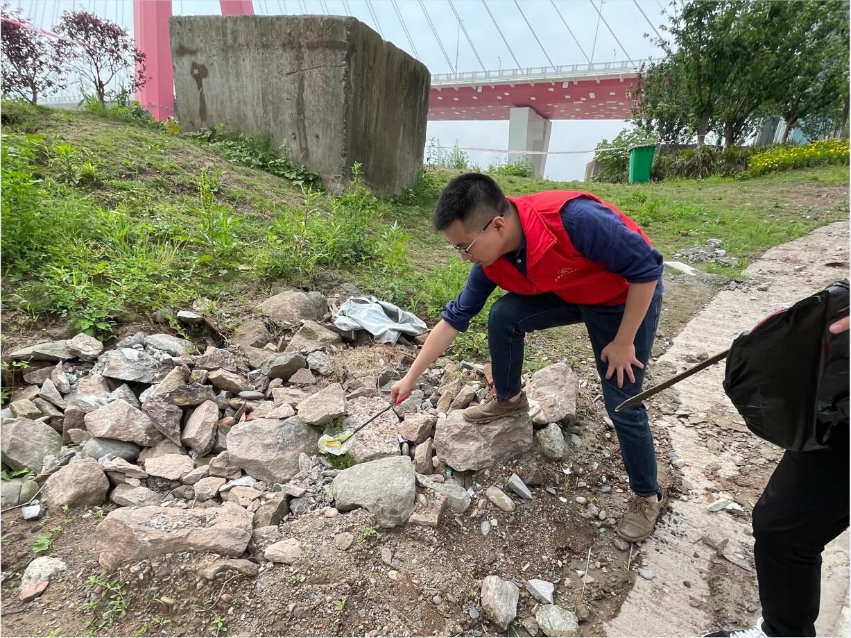 志愿者一行步行数公里,在南滨路沿江人行道绿化带收捡垃圾。仔细检查步行道周边是否有垃圾,并根据重庆市垃圾分类标准对捡拾到的垃圾进行分类。在垃圾分类过程中,志愿者们发现:收集到的垃圾中除少量群众休闲活动产生的食物残渣这类易腐垃圾外,还有不少废旧电池、工业用添加剂包装这类有害垃圾袋和废塑料,废纸等可回收垃圾。在分类过程中大家意识到,建设生态文明,不同于传统意义上的污染控制和生态恢复,而是克服工业文明弊端,探索资源节约型、环境友好型发展道路的过程。