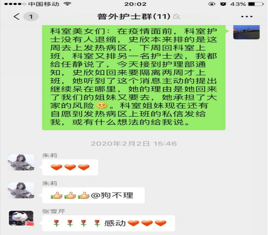 史欣始终坚持在抗疫一线,科室姐妹们纷纷为她点赞