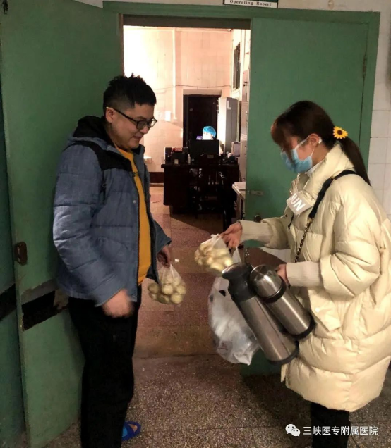 疫情期间,收到医院捐款消息后,科室每个人积极响应,纷纷献出了自己的爱心;听说血库急需献血,特别是手术患者都不能正常备血,好几位同事都决定纷纷去无偿献血;科室的护士“宋妈”,一向心灵手巧,想到一线的同志那么辛苦,决定半夜去为抗疫一线的值守人员送上亲手制作的爱心包子和奶茶;有的还从家里带来便当送到医院被封楼的同事手上,让她们吃上一点香喷喷的可口饭菜。
