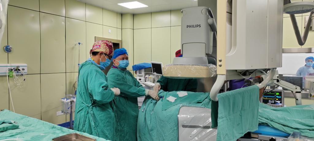 我院接到电话后立即联系姚欣主任,姚欣主欣然受命,并急赴大竹县人民医院行急诊TIPS。经过1小时的紧张抢救和手术,患者转危为安,病情平稳。