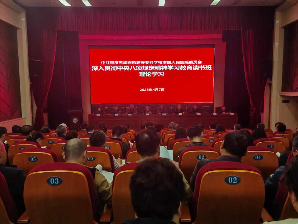 4月7日下午,医院于国本路院区学术报告厅开展深入贯彻中央八项规定精神学习教育启动读书班第一次集中学习。医院领导班子成员、中层管理人员、党支部书记及党员代表等139余名同志参会。会议由党委副书记、院长陈少云主持。