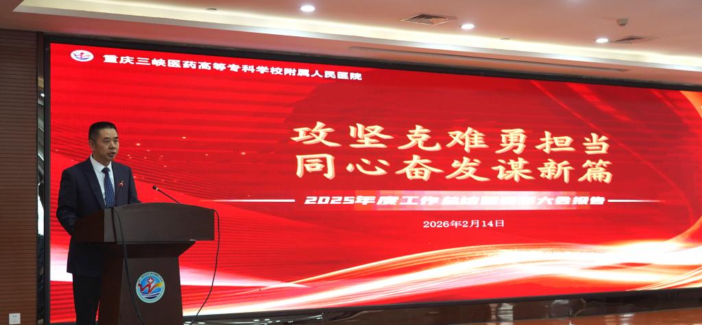 报告全面回顾了“十四五”期间,医院在重庆市卫生健康委和重庆三峡医药高等专科学校的坚强领导下,历经上划市级直管、院区资源整合等重要变革发展,医疗服务质量提升,服务总量跨越增长;运营管理提质增效,核心运营指标持续优化;人才培养成效显著,队伍素质全面提升;学科建设稳步推进,特色优势日益凸显;科研教学成果丰硕,创新能力持续增强。成绩的取得,是全院上下共同奋斗的结果,更是“仁爱、敬业、真诚、勤廉”的院训精神的生动实践。陈少云代表医院党政,向全院干部职工在“十四五”期间的不懈努力和出色表现表示最诚挚的谢意!