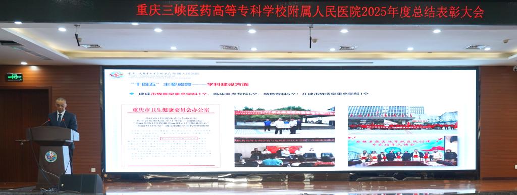金蛇盘云辞旧岁,骏马乘风踏春来。2月14日下午,重庆三峡医药高等专科学校附属人民医院召开2025年度总结表彰大会,全面总结过去一年的工作,动员部署新年度的任务,对取得优异成绩的集体和个人进行表彰。会议由医院党委副书记唐和平主持。
